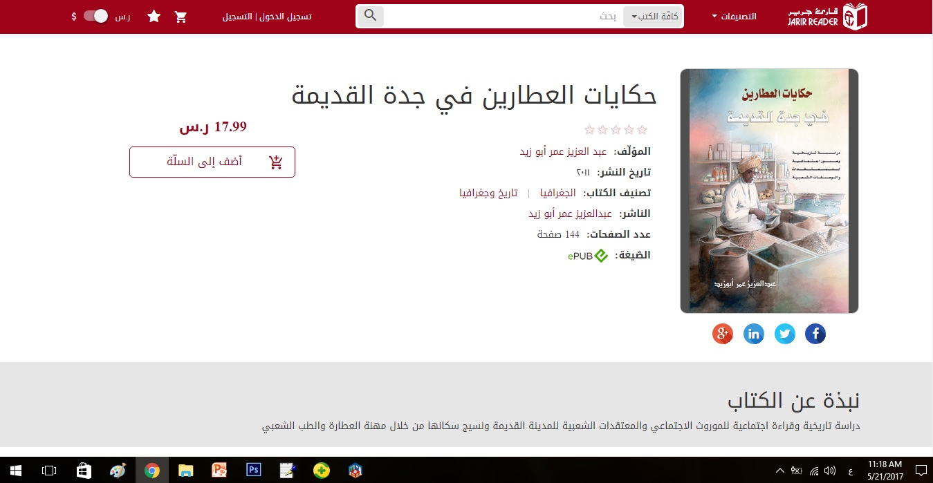 تم بحمد الله وتوفيقه توقيع عقد للنشر الاكلتروني مع شركة جرير تقوم بموجبها شركة جررير تسويق كتاب حكايات العطارين في جدة القديمة عبر منصة قارئ جرير الالكترونية في شبكة الانترنت .. حيث يمكن ذلك القارئ الحصول على النسخة الالكترونية المرخصة بحسب الاتفاق المبرم بين الطرفين .. وقد قام بتوقيع العقد مولف الكتاب كطرف أول وممثل قطاع النشر الإلكتروني كطرف ثانِ .