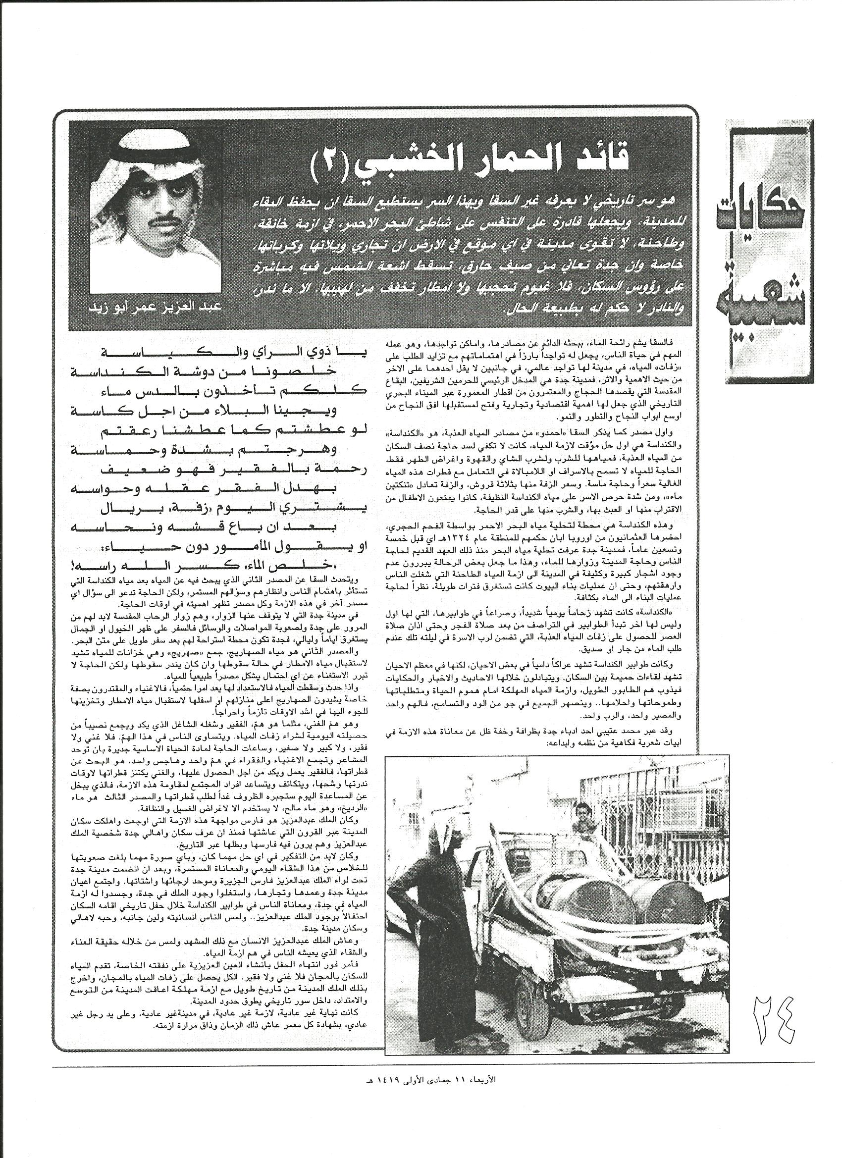 و عاش الملك عبدالعزيز الإنسان مع ذلك المشهد و لمس من خلاله حقيقة العناء و الشقاء الذي يعيشه الناس في هم أزمة المياه .